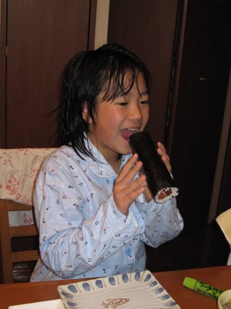 りなは恵方巻きを食べてる間はしゃべっちゃいけないということで、