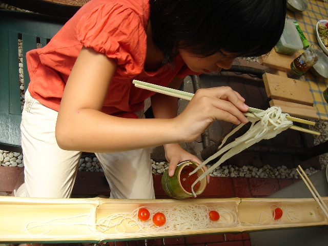 昼には流しそうめん開始!