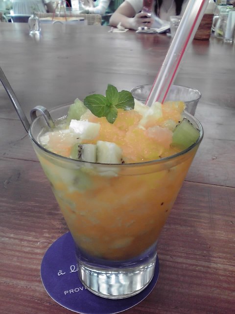 フレッシュフルーツと、ゼリーと、オレンジフローズンジュースが