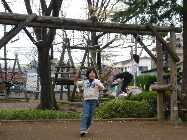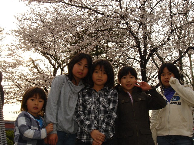 桜は満開だったけど、ちょっと曇っててジッと座ってる親3人は寒かったです。。