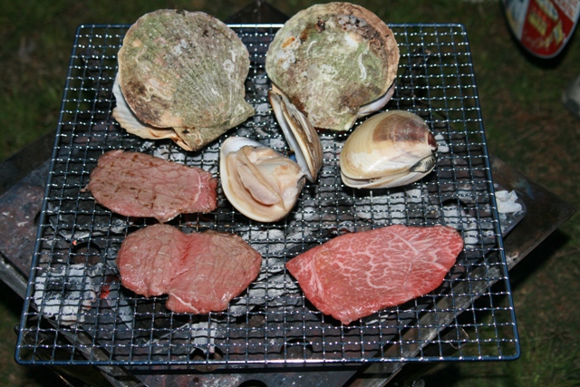 で、夜は市場でゲットした海鮮系BBQ&りなの大好きな牛肉。