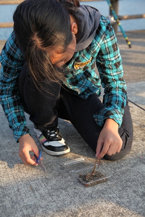 エサをチョキチョキはさみで切るのも