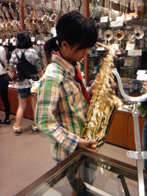 島村楽器で、りなはアルトサックスを試し吹きさせてもらいました。