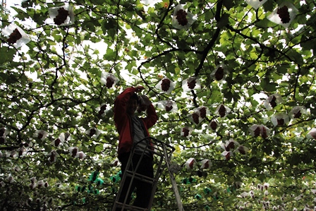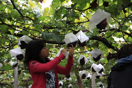 おいしいピオーネを探すの図。