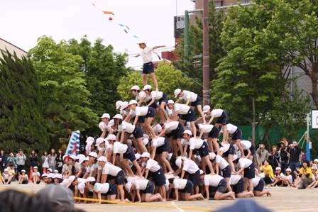 最後の見せ場の全員ピラミッド ↓ も無事成功しました。