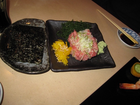 これ、ご飯なしでねぎとろを海苔に巻いて食べます。