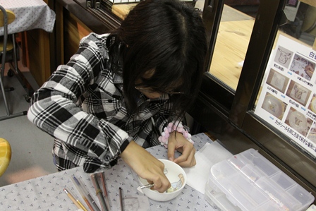 りなはお皿に絵付け&ジェルキャンドル作りに挑戦。