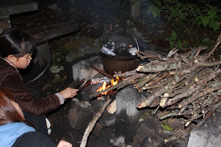 夜はまた、たき火しながら
